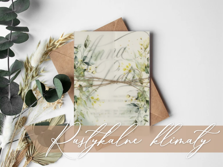 Inspirowane naturą, ale również troską o matkę ziemię zaproszenia rustykalne szturmem zdobyły rynek branży ślubnej. Jak się okazuje czasem mniej, znaczy więcej. Delikatne motywy kwiatowe, ekologiczny papier oraz jutowy sznurek to czasem wszystko, czego potrzeba, by odkryć piękno drzemiące w przyrodzie. Utrzymane w naturalnie występujących kolorach, a zatem różnorodnych odcieniach zieleniach i brązach stanowią zapowiedź wesela o bardziej swobodnych klimatach. Wykorzystanie prostych rozwiązań nie ujmuje im klasy, a wręcz przeciwnie dodaje uroku.