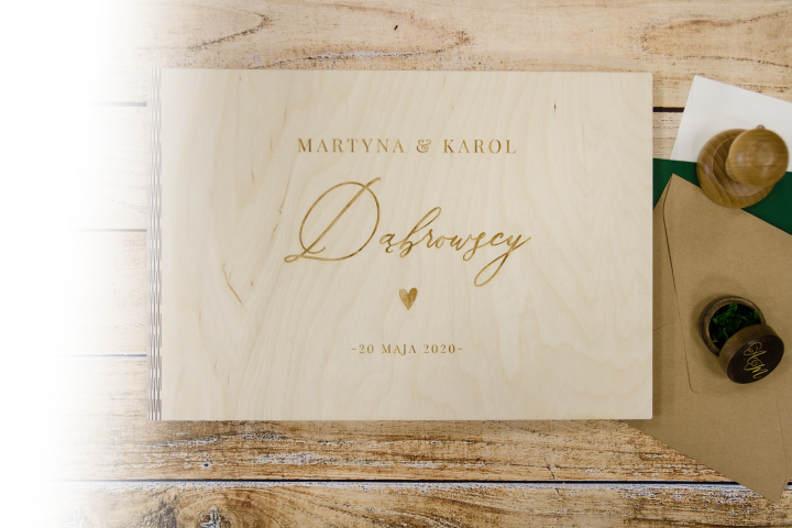 Papierowe wkłady ksiąg gości weselnych idealnie nadające się do składania życzeń połączone z oryginalną okładką z drewnianej sklejki. Idealna księga na wesela w stylu rustykalnym, boho, klasycznym.