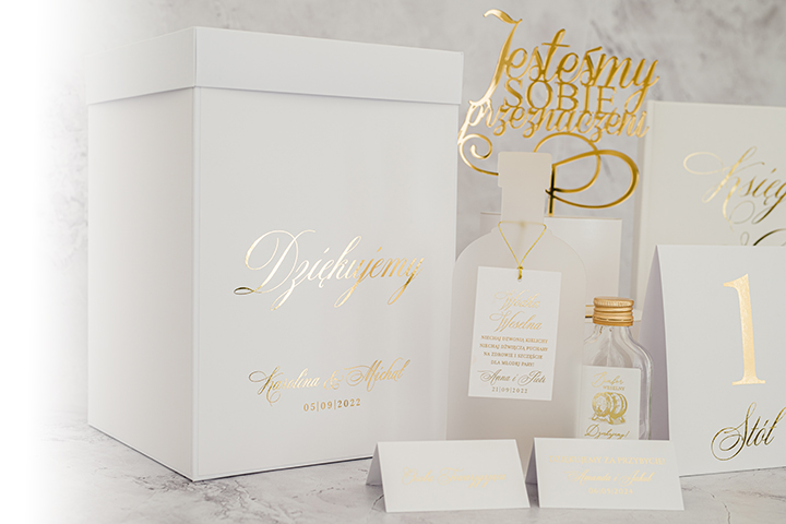 Dodatki weselne białe ze złoceniem