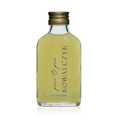 Buteleczka ślubna jest mała, pomieści 100 ml płynu, oczywiście wybór trunku należy do pary młodej.
