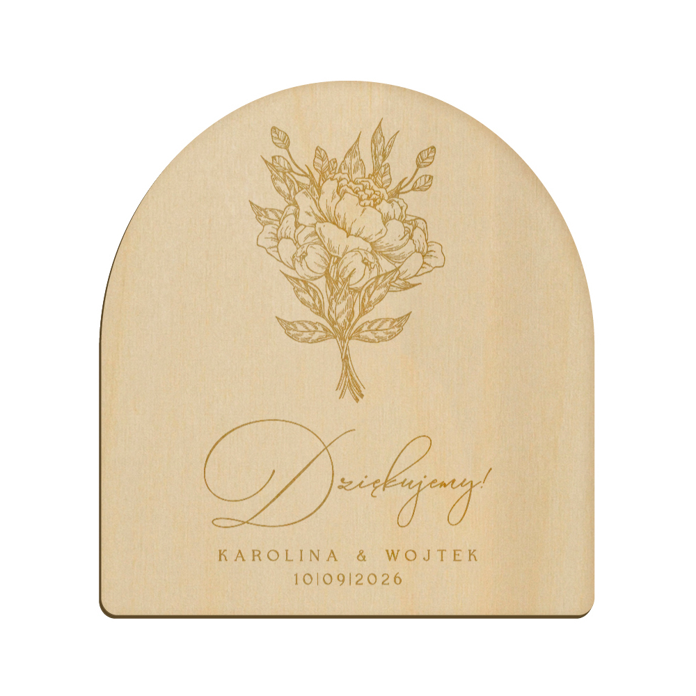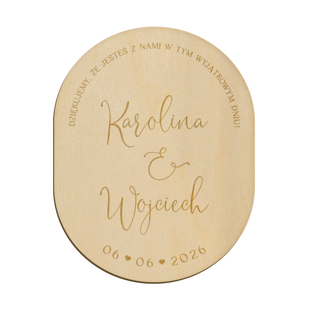 Każdy magnes personalizujemy, dodając Wasze imiona, datę ślubu oraz krótkie podziękowanie, np. „Dziękujemy za przybycie!” lub „Miło, że jesteście!”.