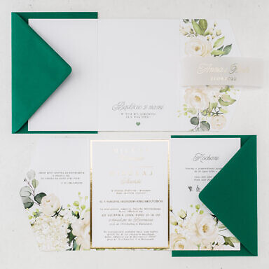 Zaproszenia w kwiatowym folderze ze złoceniem w2