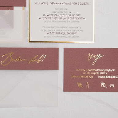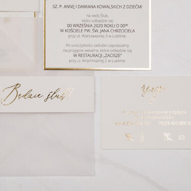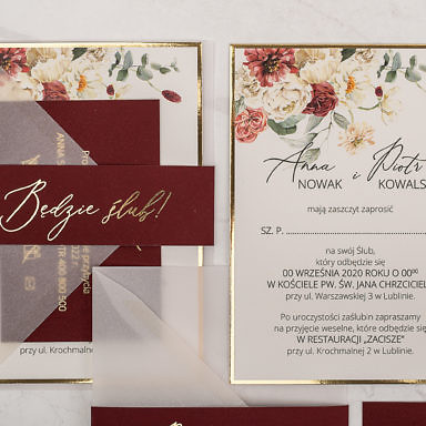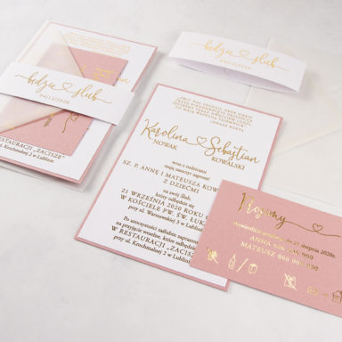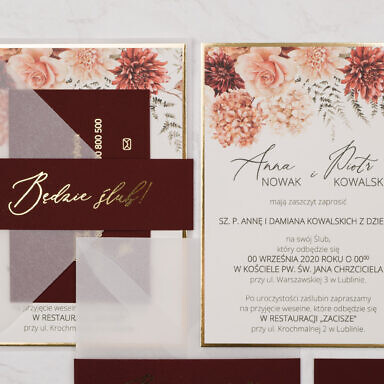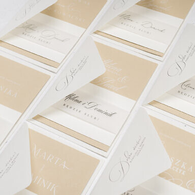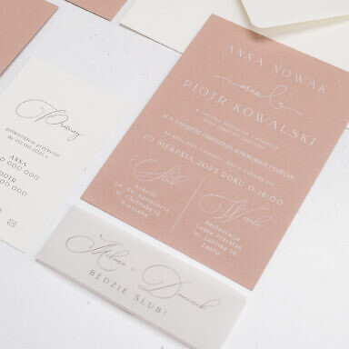 Sama forma jednokartkowego zaproszenia na ślub jest niezwykle uniwersalna i niezobowiązująca, tę rolę spełniają znajdujące się na niej dekoracje. Eleganckie, subtelne i skromne jednocześnie zaproszenia ślubne jednokartkowe z naszej oferty będą pasowały zarówno do przyjęcia w stylu glamour jak do rustykalnego, eko czy boho, zależnie od wzoru. Tylko od młodej pary zależy jak skomponuje zaproszenia z ozdobami sali i stołów. Zaproszenia na ślub jednokartkowe są w swojej prostocie bardzo uniwersalnym wyborem, a nasze kolekcje pasujących dodatków pięknie dopełnią dekorację stołów i nie tylko.