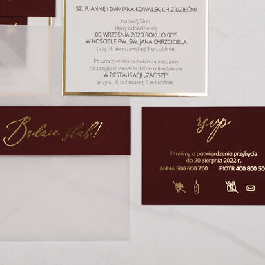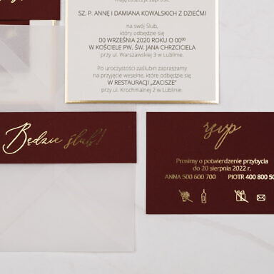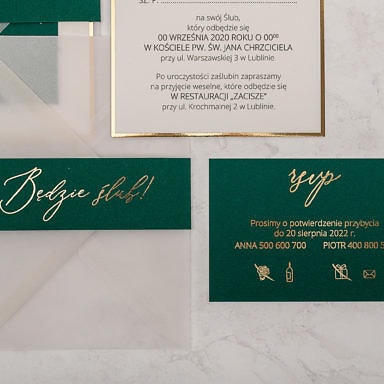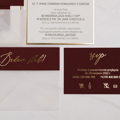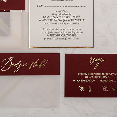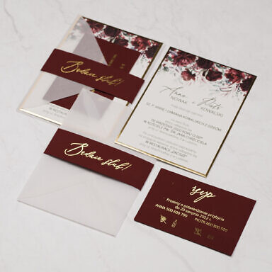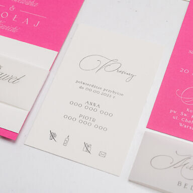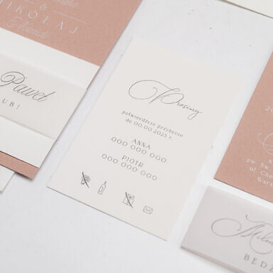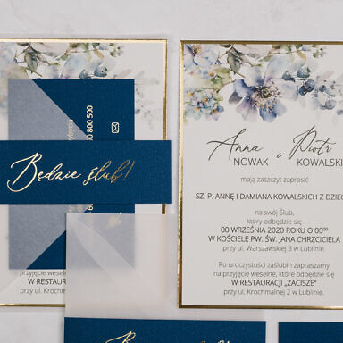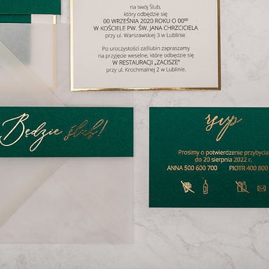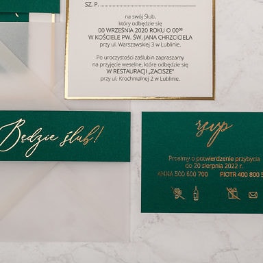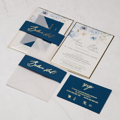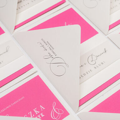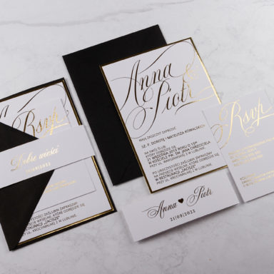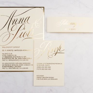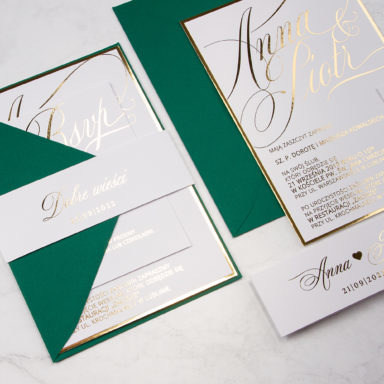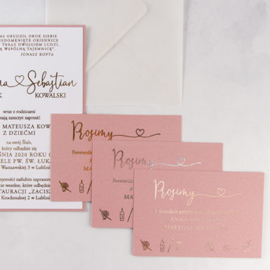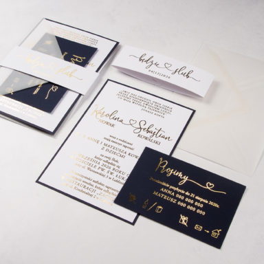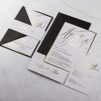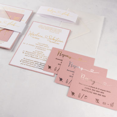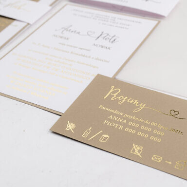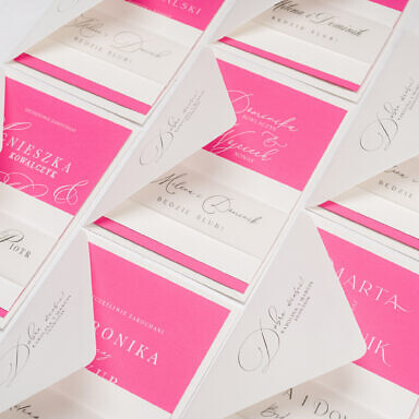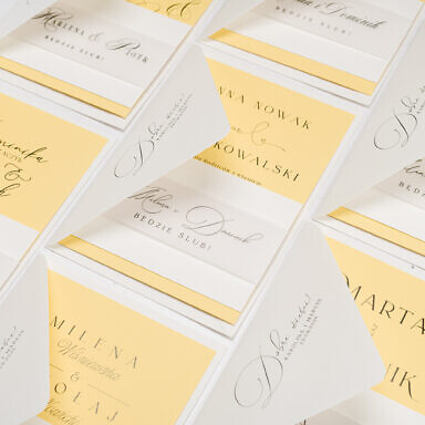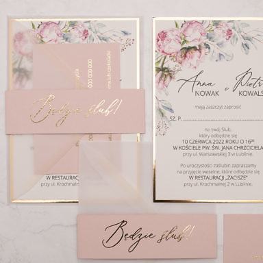 Zamówienie zaproszeń ślubnych na naszej stronie jest bardzo proste. Wystarczy wejść w zakładkę „zaproszenia ślubne i weselne”, a następnie w kategorię „zaproszenia ślubne jednokartkowe”. Dołożyliśmy wszelkich starań aby przekazać wszystkie potrzebne informacje, więc po wejściu na stronę produktu zobaczymy dobrze widoczną cenę, jasny dla każdego opis, odpowiednie okienka i instrukcje na bieżąco prowadzą przez kolejne etapy zamówienia (np. wybór koloru sznurka itp.) Warto dokładnie czytać opisy, gdyż zaproszenia mają w komplecie dedykowane kolorowe koperty, a inne standardowe białe lub ecru dobrane do wybranego papieru. Pamiętajcie, aby przed kliknięciem „dodaj do koszyka” wpisać w okienko potrzebną ilość produktów. W każdej chwili przed sfinalizowaniem zakupów można domówić inne produkty lub zmienić wcześniej wybraną ilość. Kolejnymi krokami będzie wybór przesyłki i uzupełnienie niezbędnych danych potrzebnych do realizacji zamówienia. Można również zamówić jedną sztukę w formie próbki, na wybranym papierze z dowolną wstążką. Po złożeniu zamówienia na podany adres mailowy zostanie wysłany formularz, w którym podaje się treść i wszystkie potrzebne dane do wykonania zaproszeń. Według zawartych w formularzu wytycznych, nasz grafik stworzy projekt, który prześle w mailu zwrotnym do akceptacji. Informacja o akceptacji projektu jest dla nas niezbędna do dalszej realizacji zamówienia. W razie potrzeby służymy pomocą i radą.