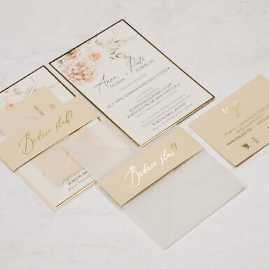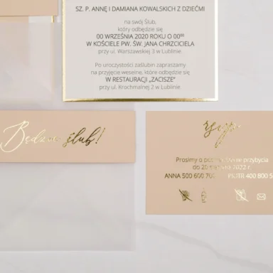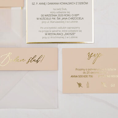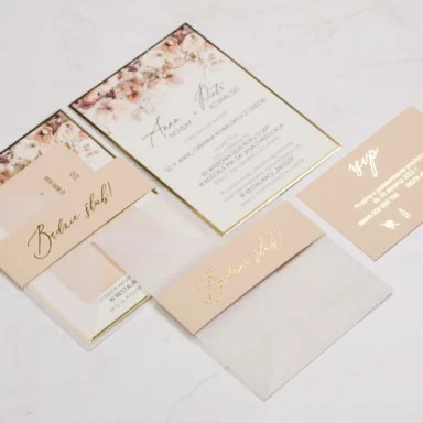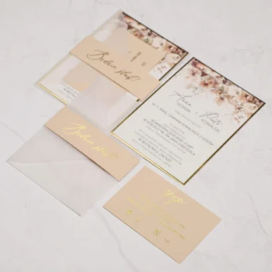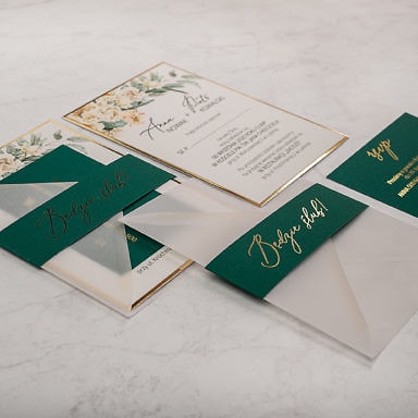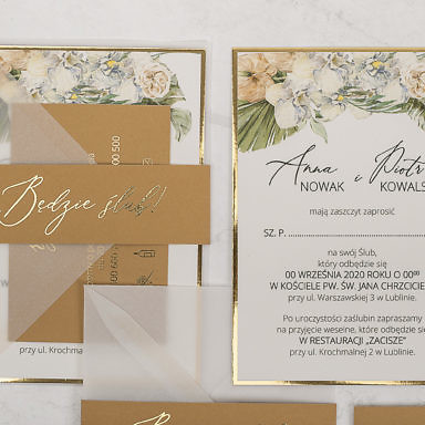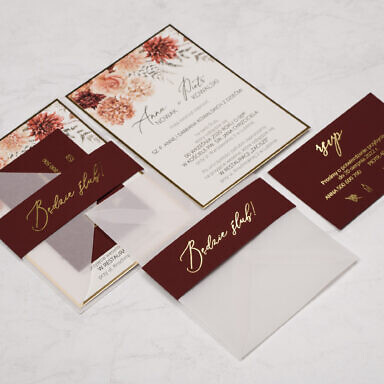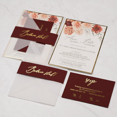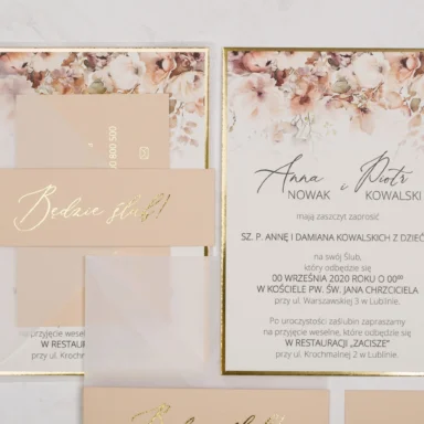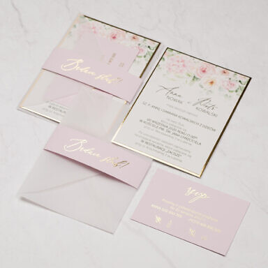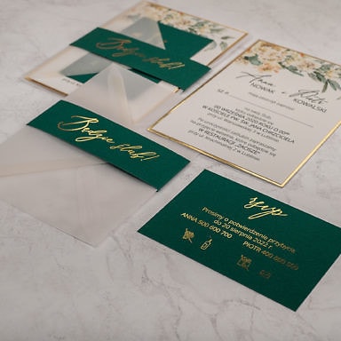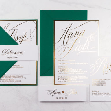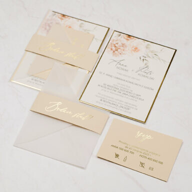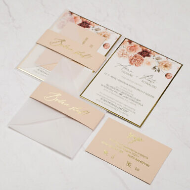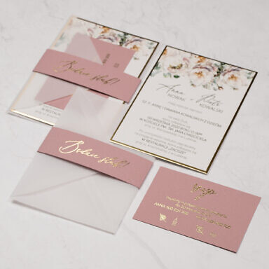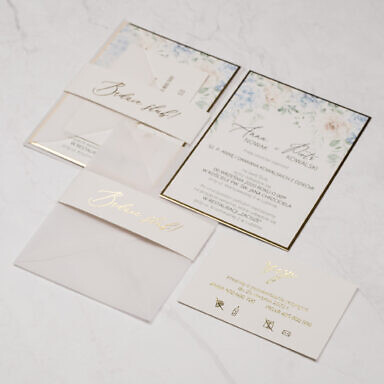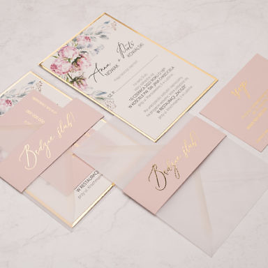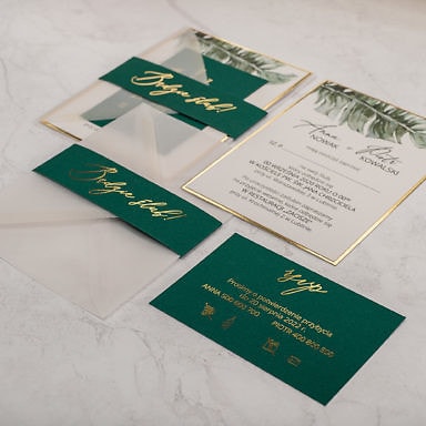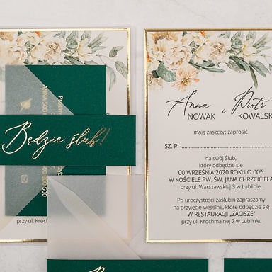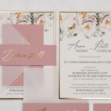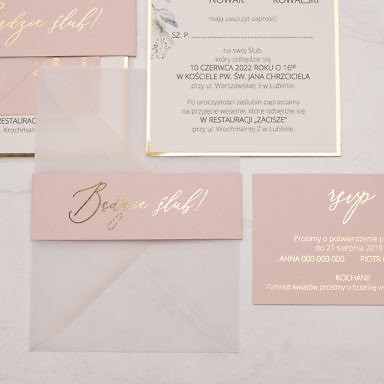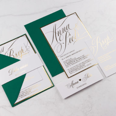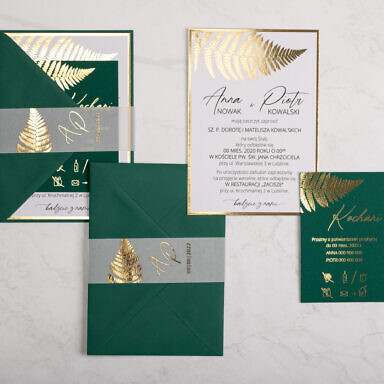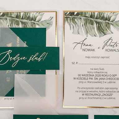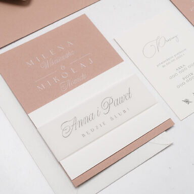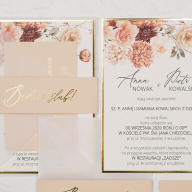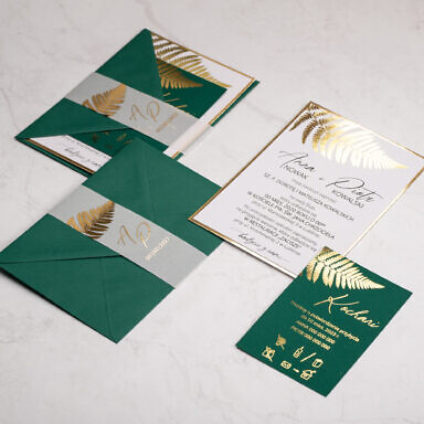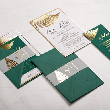 W naszej ofercie mamy zaproszenia ślubne jednokartkowe w kilku odsłonach, przy wyborze warto kierować się klimatem jaki chcielibyście stworzyć na weselu. Delikatne liście i kwiaty, głębokie zielenie, brązy i odcienie różu idealnie wpasują się w wesele inspirowane naturą. Zaproszenia z elementami złota lub srebra uzupełnione delikatnymi pastelami, różem czy błękitem tworzą niezwykle eleganckie połączenie, oferują szyk i wytworność w stylu glamour.