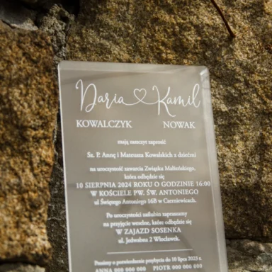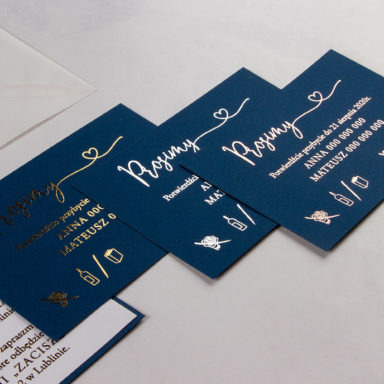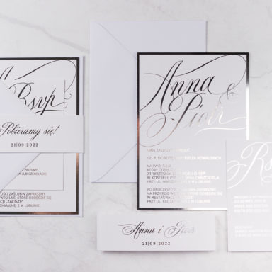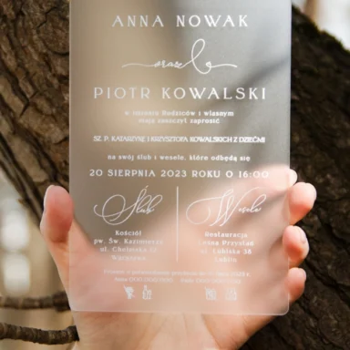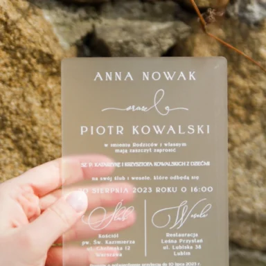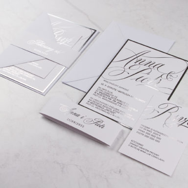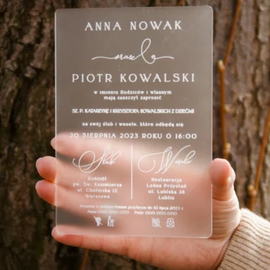 Zdecydowanie warto podkreślić unikalny, sezonowy charakter Waszej uroczystości. Zbudowanie wyjątkowego świątecznego, czy też zimowego klimatu wymaga stworzenia odpowiedniej otoczki, której zapowiedzią będą właśnie zaproszenia ślubne zima. Piękna, chłodna paleta kolorystyczna bieli, błękitu, granatu czy czerni wraz z dodatkiem złota lub srebra tworzy eleganckie połączenia na zaproszeniach, które świetnie oddają urok tej pory roku. Możecie wybierać wśród wielu modeli zaproszeń składanych, jednokartkowych lub akrylowych, gdzie oszroniony tekst idealnie oddaje kwintesencję zimowej aury. Wasza personalizacja wprowadzi z kolei indywidualny, osobisty akcent. Wybierzcie tekst oraz czcionki na zaproszeniu. Zdecydujcie o układzie, kolorach i ogólnej estetyce, by stworzyć projekt odpowiadający Waszym oczekiwaniom. Zamówienia drukujemy po akceptacji klientów, dzięki czemu na każdym etapie projektowania macie wgląd w wygląd Waszych zaproszeń.