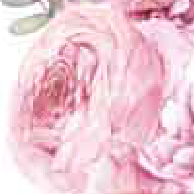 Wycinek obrazu o rozdzielczości 400 x 400 pikseli powiększony czterokrotnie, dodatkowo z zastosowaniem dużej kompresji danych w formacie .jpg