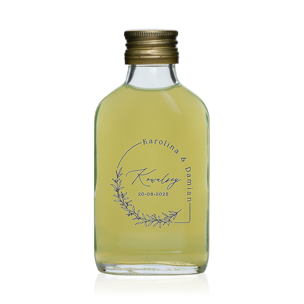 Oferowany przez nas produkt to szklana buteleczka o pojemności 100 ml z metalową nakrętką.