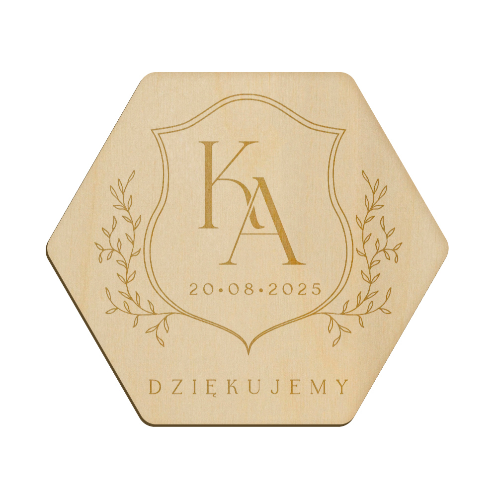 Drewniany magnes z grawerunkiem idealnie sprawdzi się w roli podziękowania dla gości weselnych.