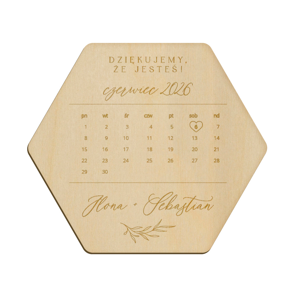 Drewniany magnes z grawerunkiem idealnie sprawdzi się w roli podziękowania dla gości weselnych.