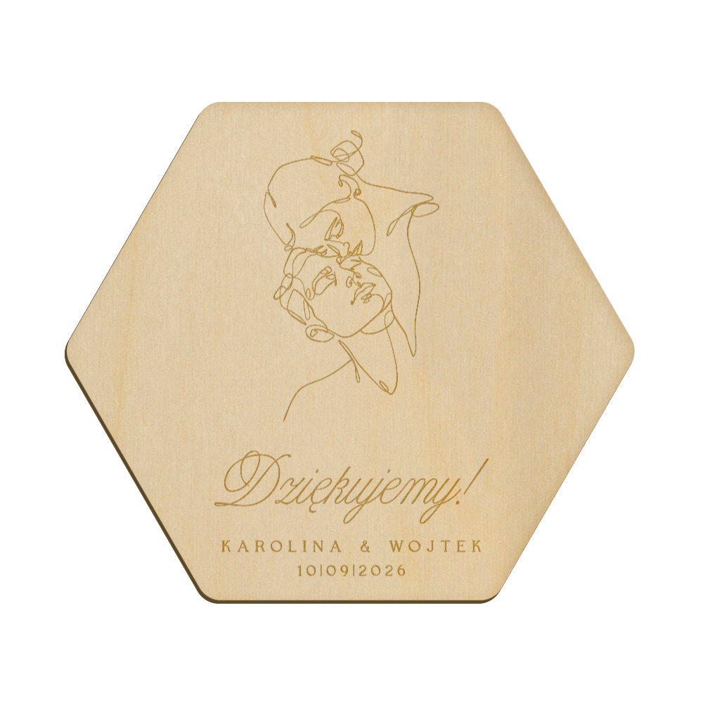 Drewniany magnes z grawerunkiem idealnie sprawdzi się w roli podziękowania dla gości weselnych.