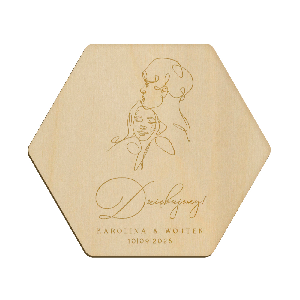 Drewniany magnes z grawerunkiem idealnie sprawdzi się w roli podziękowania dla gości weselnych.