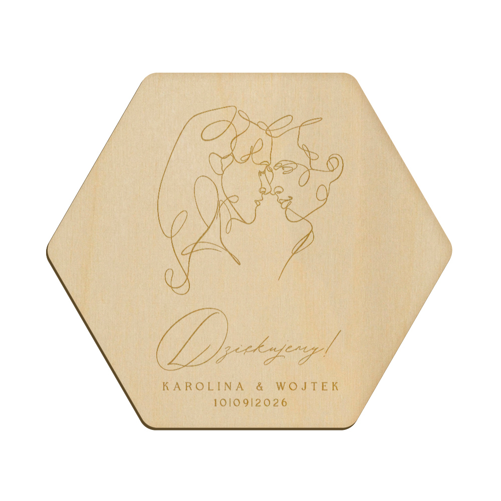Drewniany magnes z grawerunkiem idealnie sprawdzi się w roli podziękowania dla gości weselnych.
