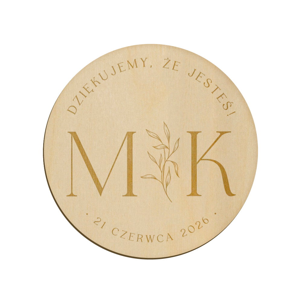 Drewniany magnes z grawerunkiem idealnie sprawdzi się w roli podziękowania dla gości weselnych.