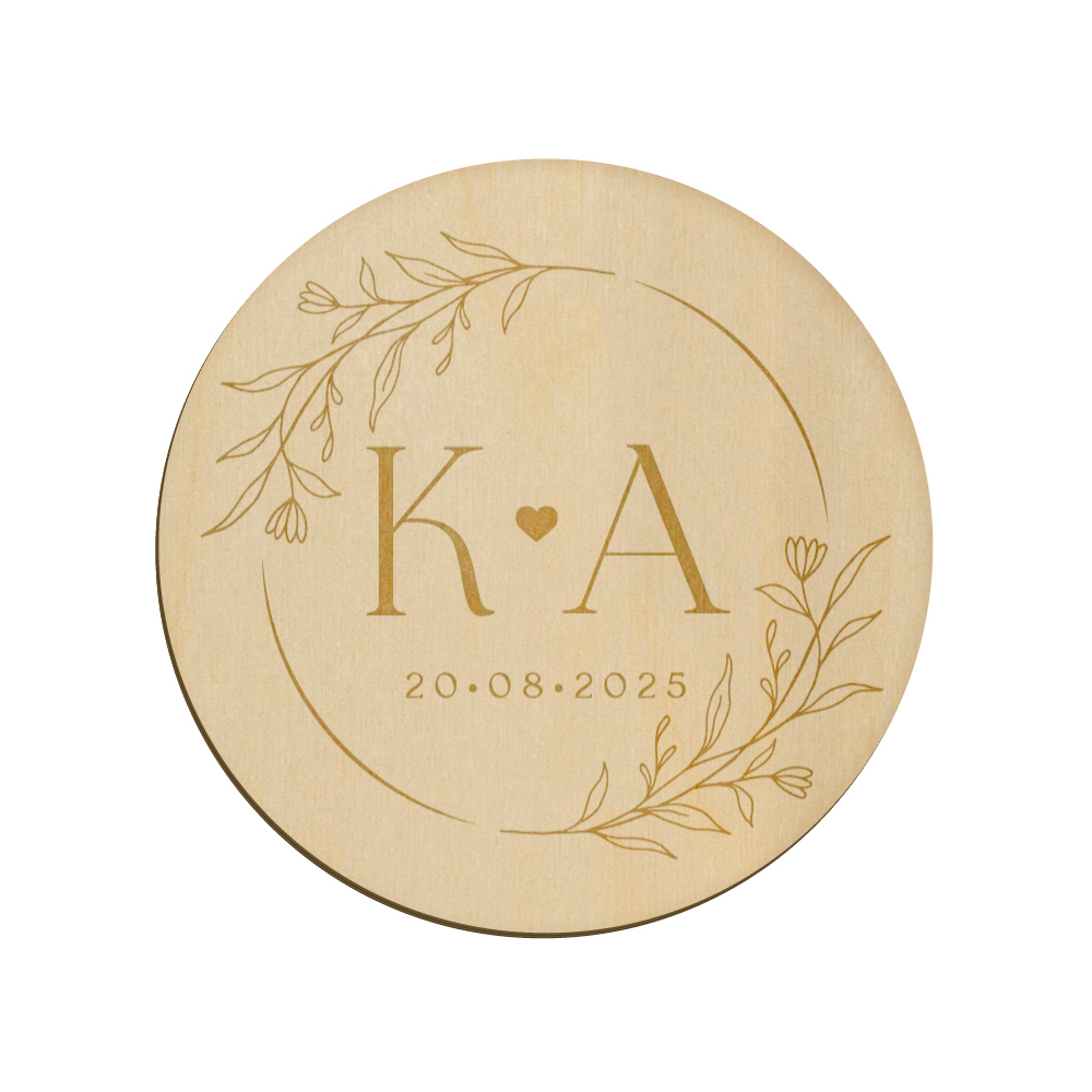 Drewniany magnes z grawerunkiem idealnie sprawdzi się w roli podziękowania dla gości weselnych.