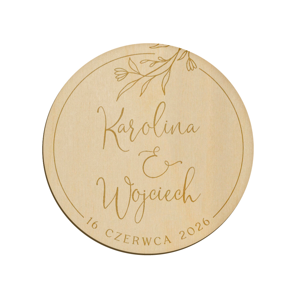 Drewniany magnes z grawerunkiem idealnie sprawdzi się w roli podziękowania dla gości weselnych.
