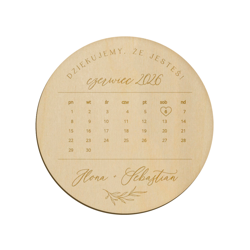 Drewniany magnes z grawerunkiem idealnie sprawdzi się w roli podziękowania dla gości weselnych.