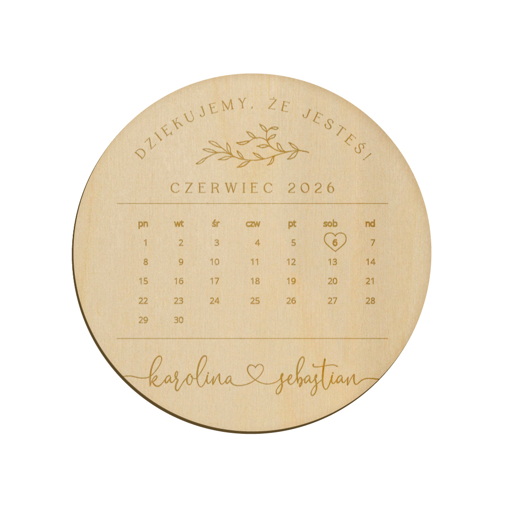 Drewniany magnes z grawerunkiem idealnie sprawdzi się w roli podziękowania dla gości weselnych.