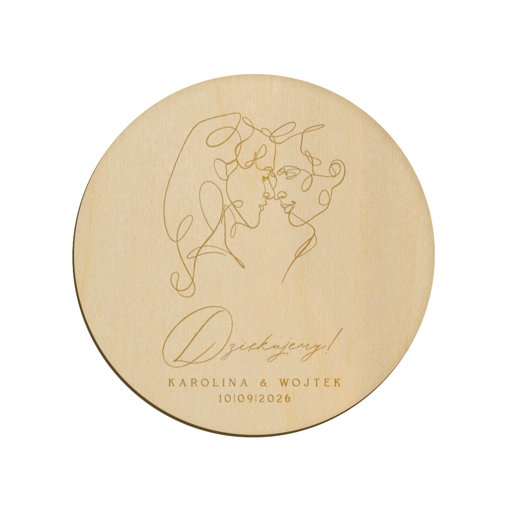 Drewniany magnes z grawerunkiem idealnie sprawdzi się w roli podziękowania dla gości weselnych.
