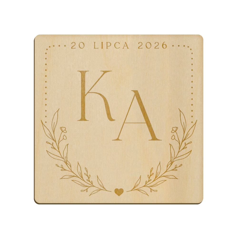 Drewniany magnes z grawerunkiem idealnie sprawdzi się w roli podziękowania dla gości weselnych.