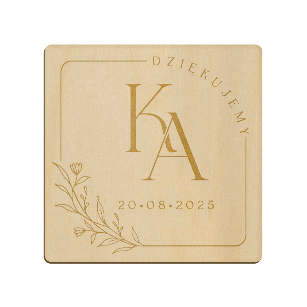 Drewniany magnes z grawerunkiem idealnie sprawdzi się w roli podziękowania dla gości weselnych.