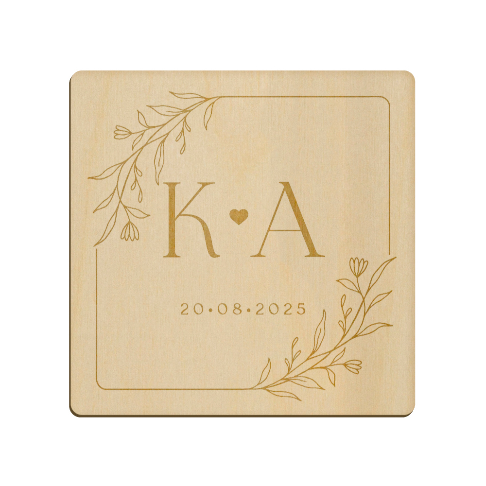 Drewniany magnes z grawerunkiem idealnie sprawdzi się w roli podziękowania dla gości weselnych.