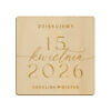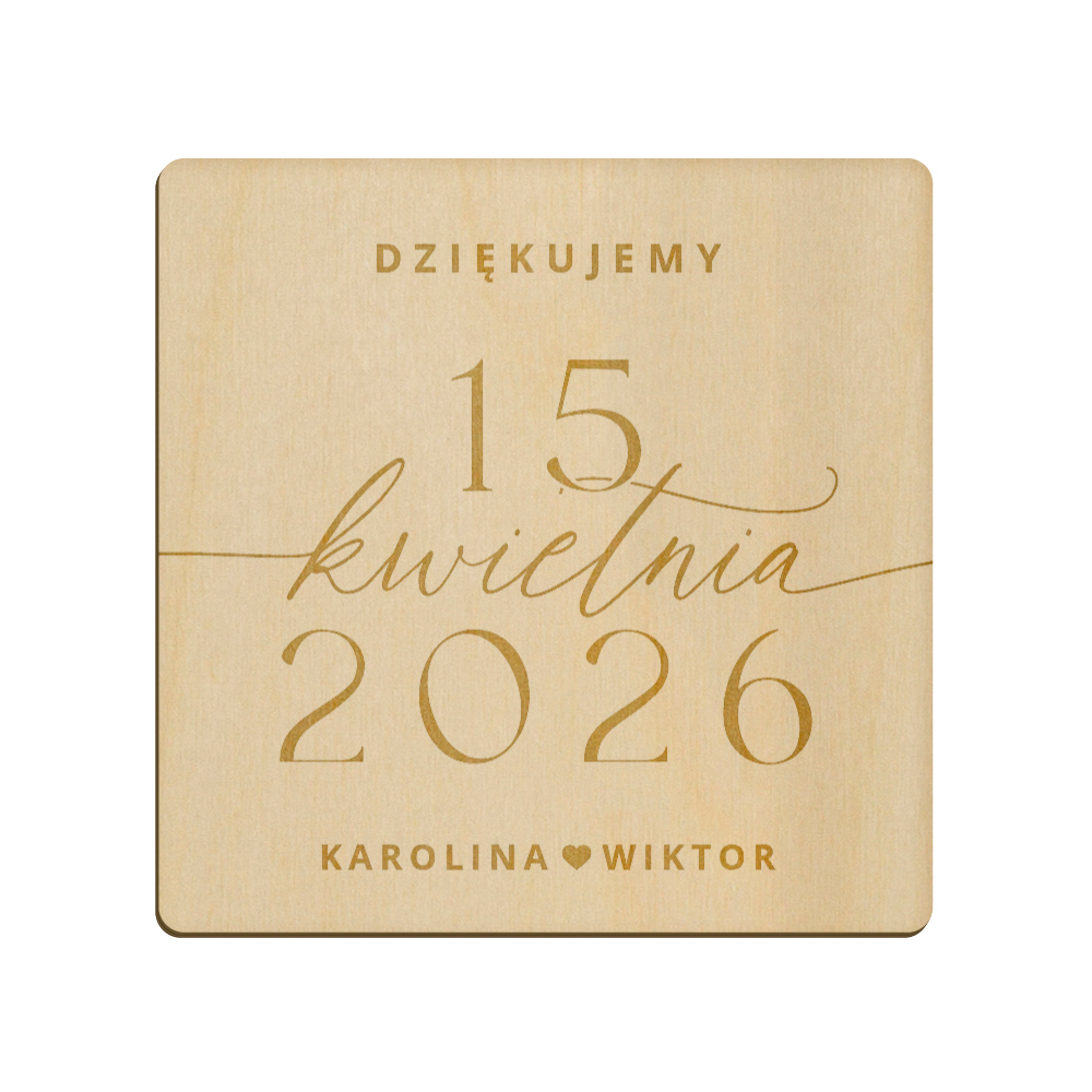 Drewniany magnes z grawerunkiem idealnie sprawdzi się w roli podziękowania dla gości weselnych.