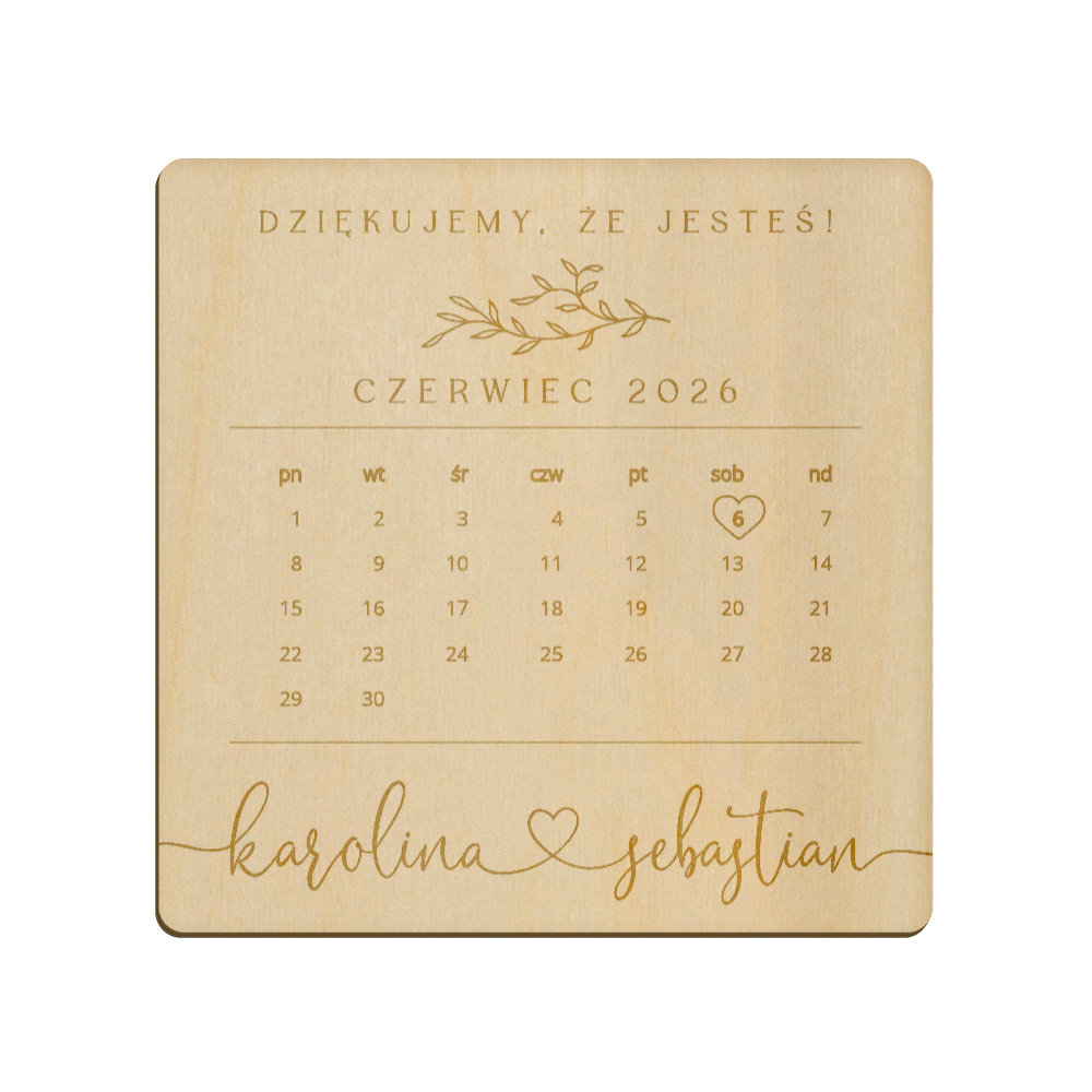 Drewniany magnes z grawerunkiem idealnie sprawdzi się w roli podziękowania dla gości weselnych.