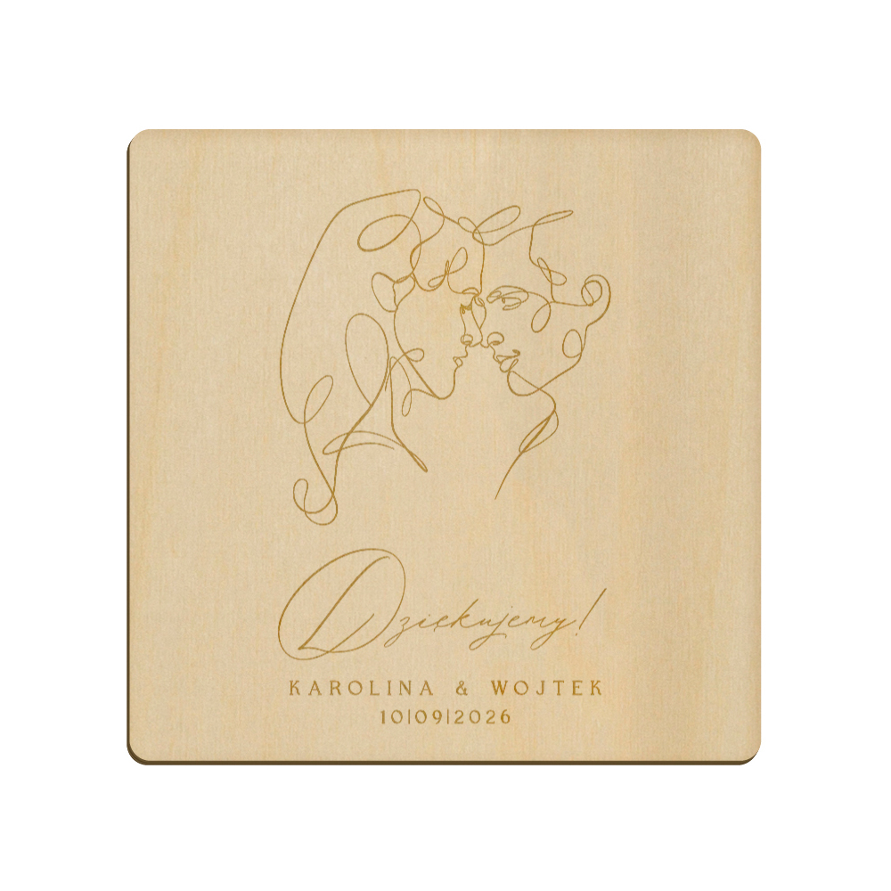 Drewniany magnes z grawerunkiem idealnie sprawdzi się w roli podziękowania dla gości weselnych.