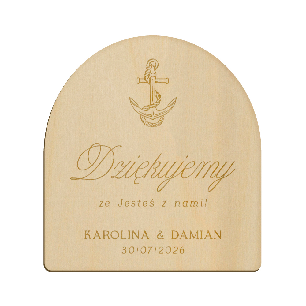 Drewniany magnes z grawerunkiem idealnie sprawdzi się w roli podziękowania dla gości weselnych.