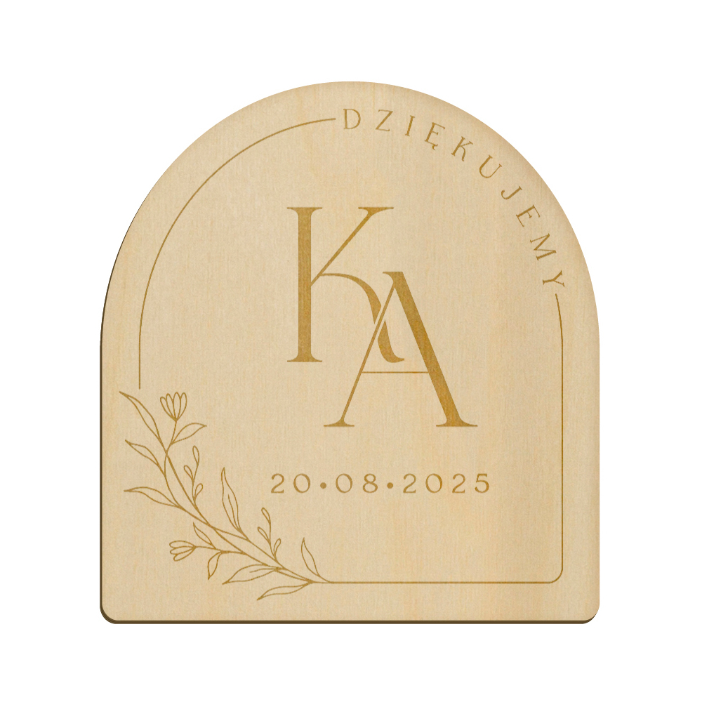 Drewniany magnes z grawerunkiem idealnie sprawdzi się w roli podziękowania dla gości weselnych.