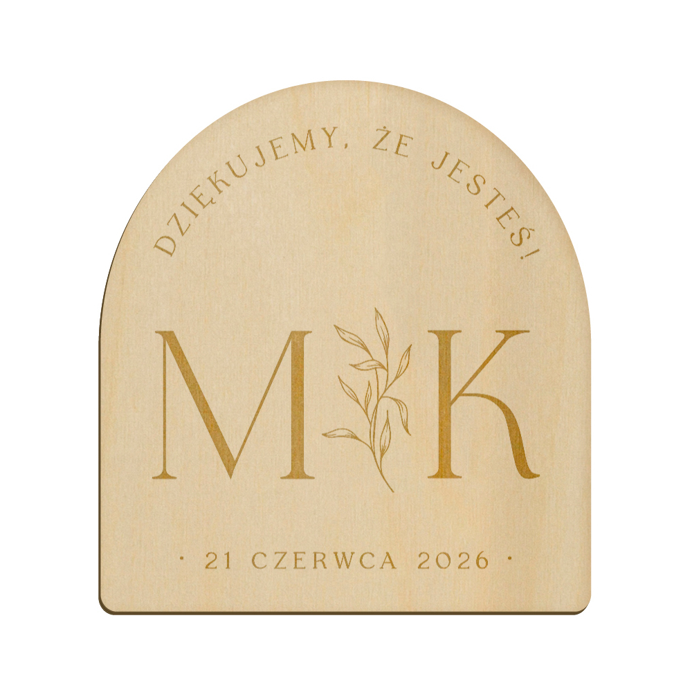 Drewniany magnes z grawerunkiem idealnie sprawdzi się w roli podziękowania dla gości weselnych.