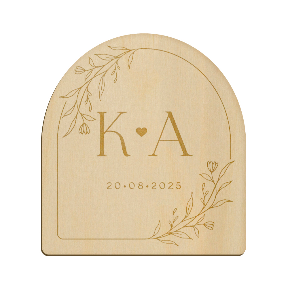 Drewniany magnes z grawerunkiem idealnie sprawdzi się w roli podziękowania dla gości weselnych.