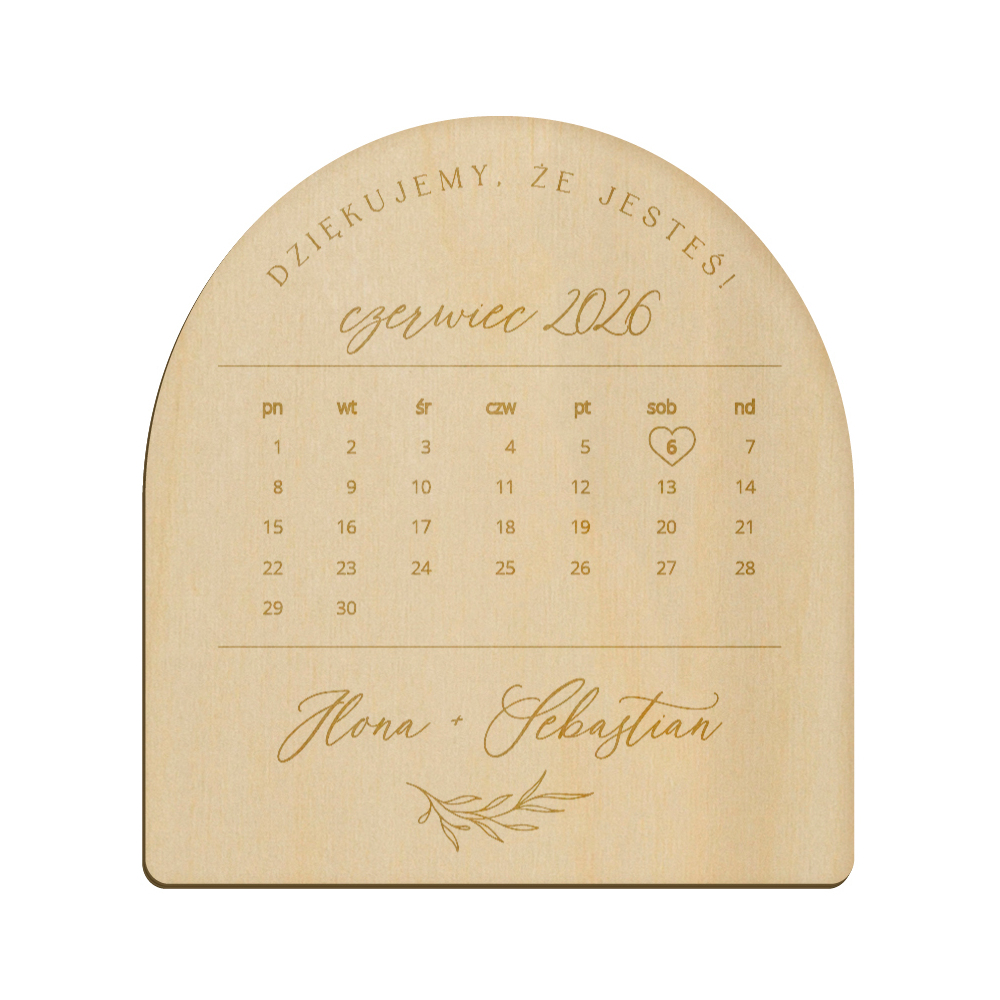 Drewniany magnes z grawerunkiem idealnie sprawdzi się w roli podziękowania dla gości weselnych.