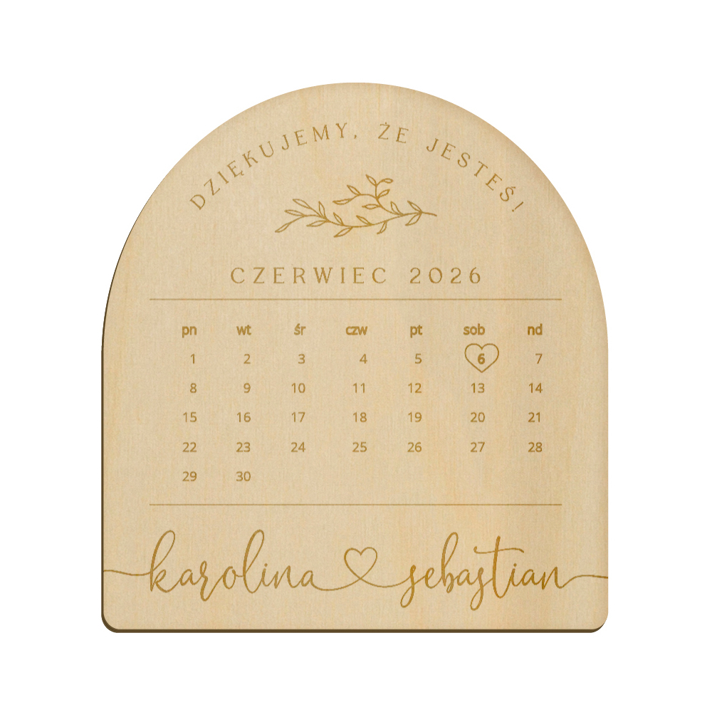Drewniany magnes z grawerunkiem idealnie sprawdzi się w roli podziękowania dla gości weselnych.