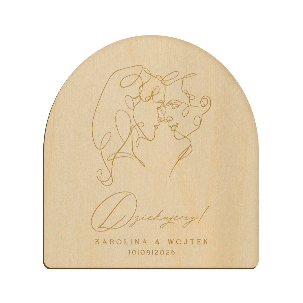 Drewniany magnes z grawerunkiem idealnie sprawdzi się w roli podziękowania dla gości weselnych.