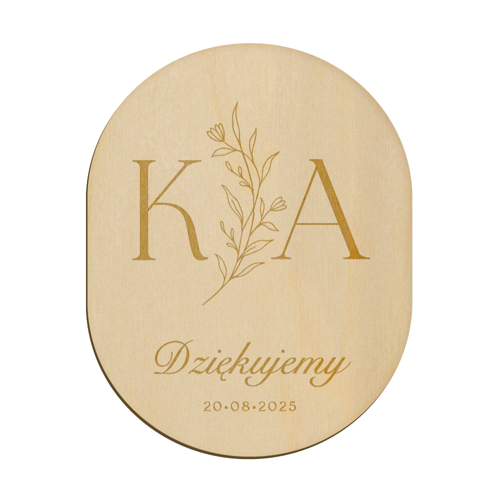 Drewniany magnes z grawerunkiem idealnie sprawdzi się w roli podziękowania dla gości weselnych.