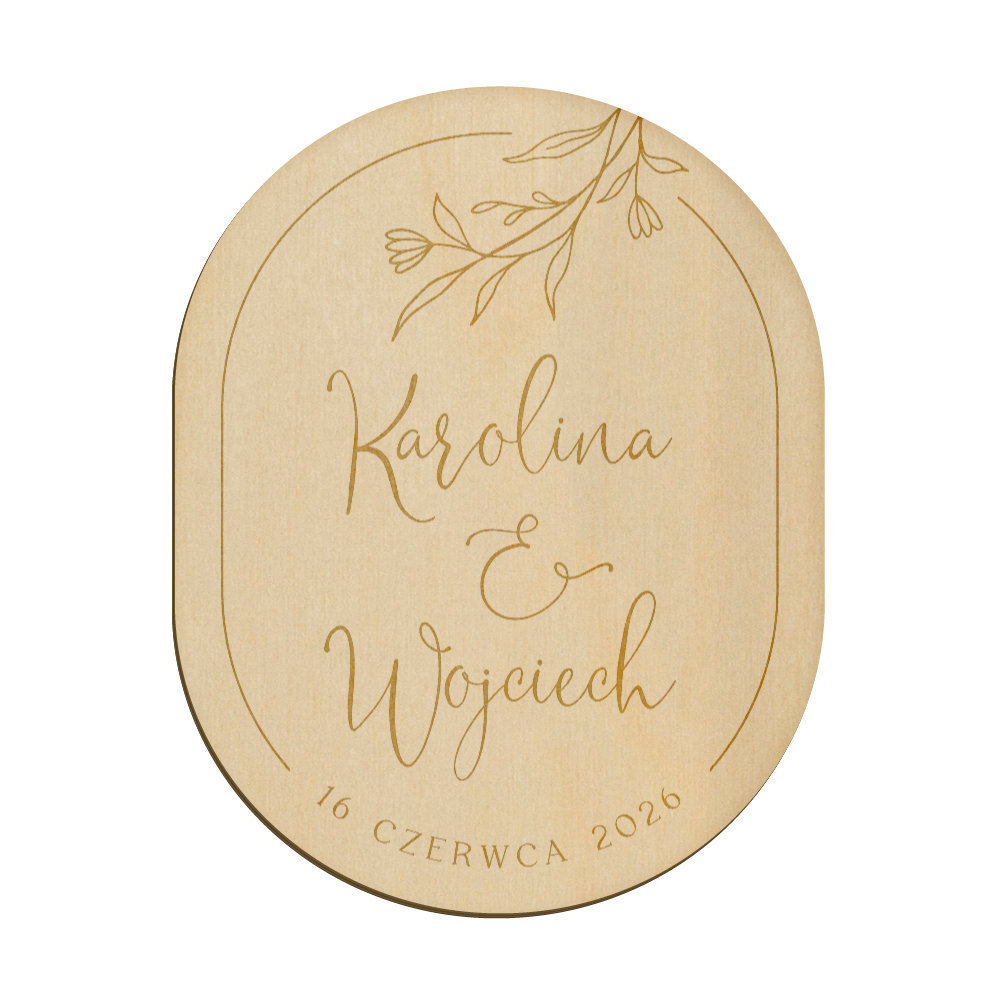 Drewniany magnes z grawerunkiem idealnie sprawdzi się w roli podziękowania dla gości weselnych.