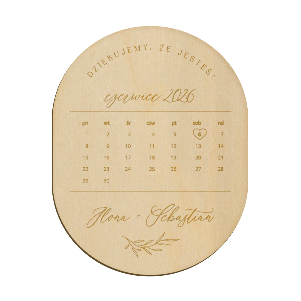 Drewniany magnes z grawerunkiem idealnie sprawdzi się w roli podziękowania dla gości weselnych.