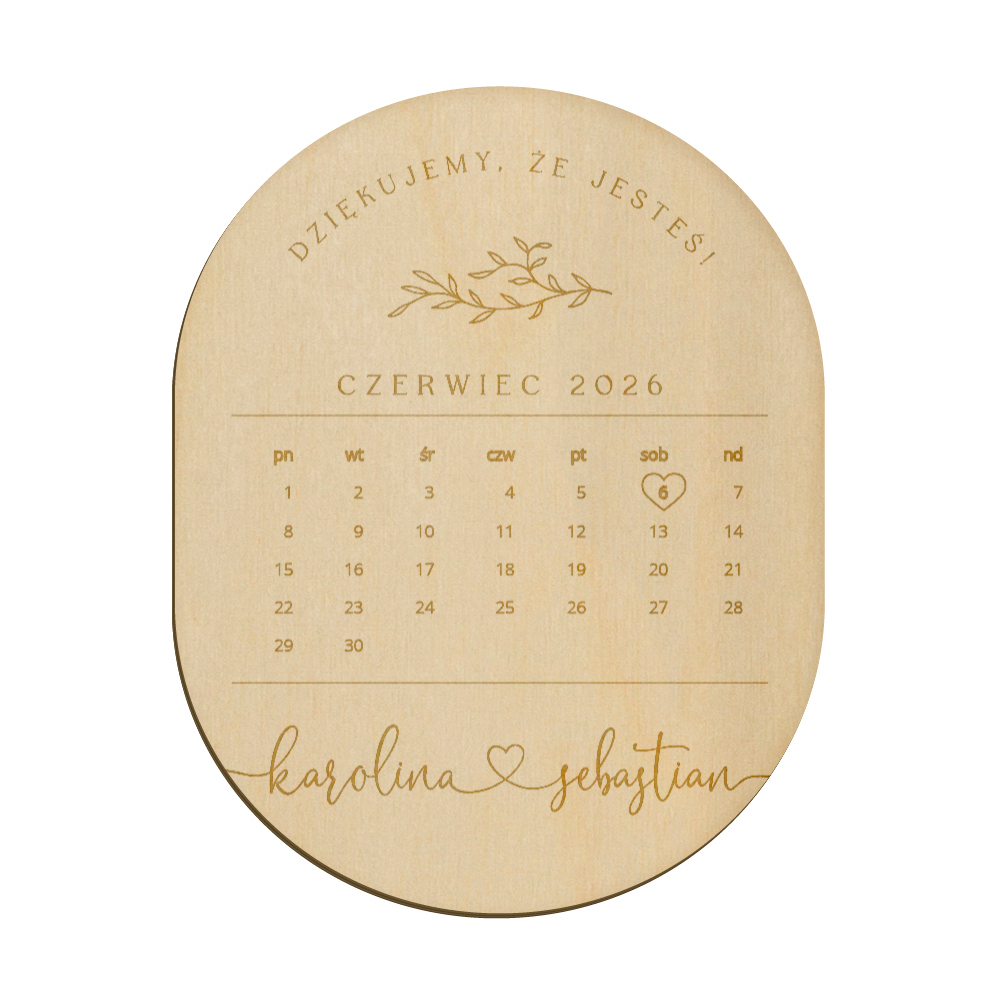 Drewniany magnes z grawerunkiem idealnie sprawdzi się w roli podziękowania dla gości weselnych.