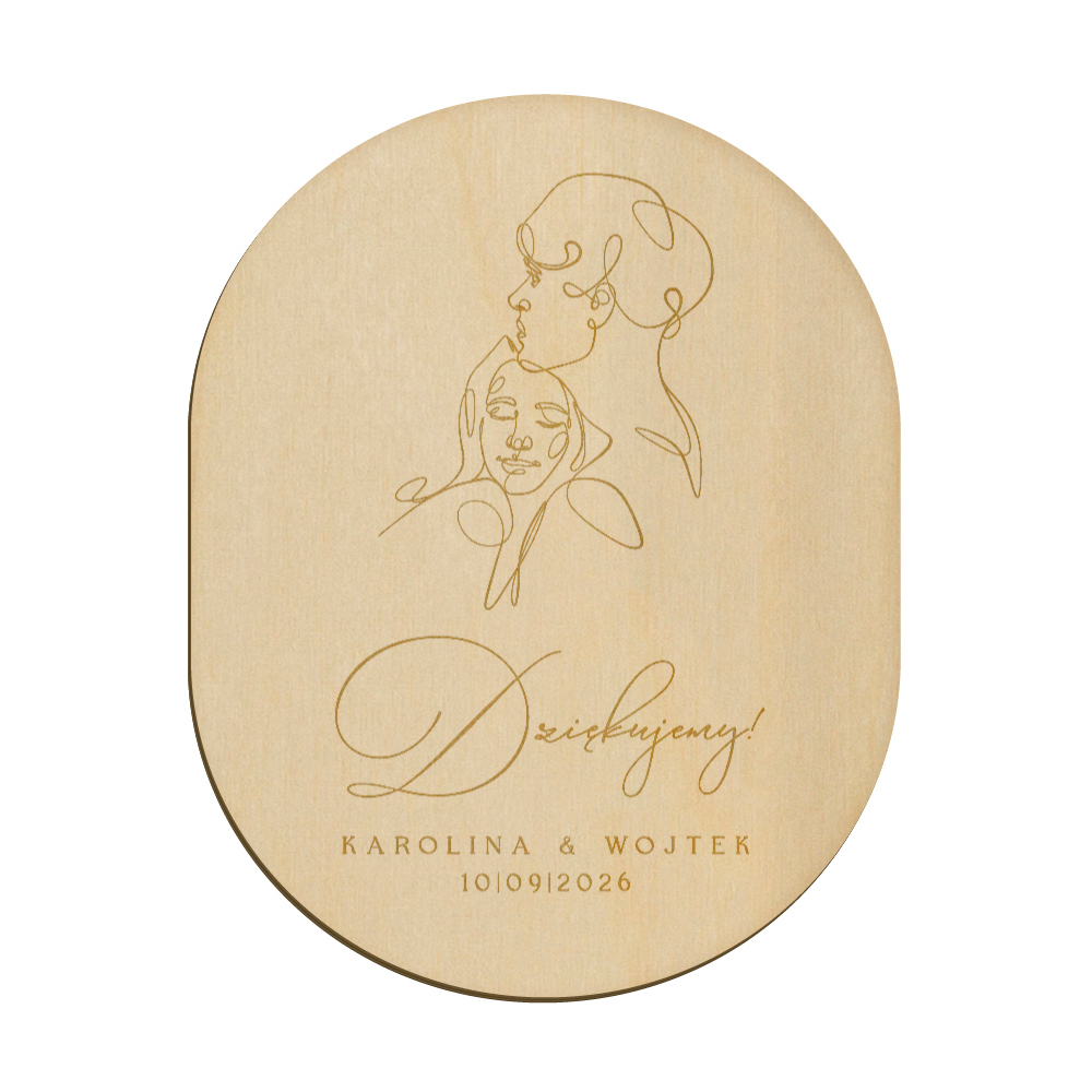 Drewniany magnes z grawerunkiem idealnie sprawdzi się w roli podziękowania dla gości weselnych.