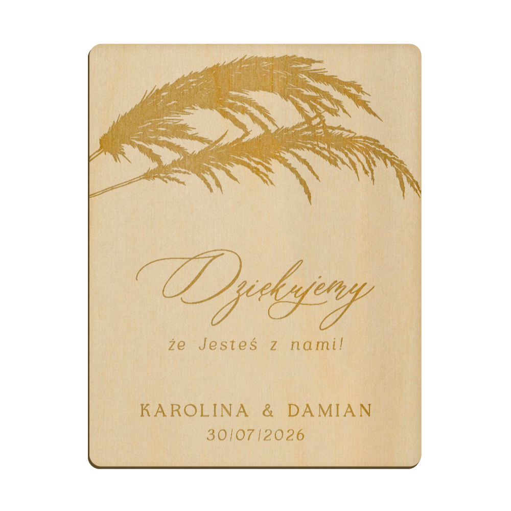 Drewniany magnes z grawerunkiem idealnie sprawdzi się w roli podziękowania dla gości weselnych.