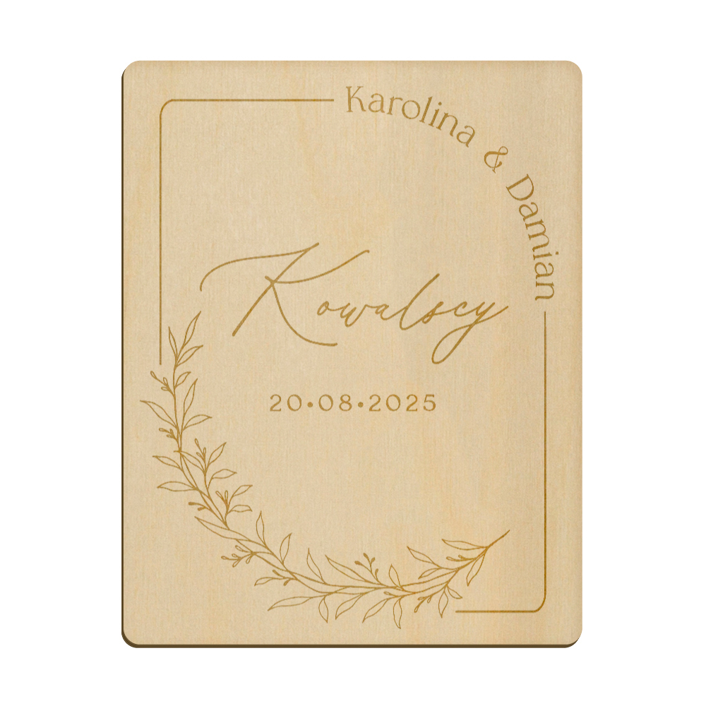 Drewniany magnes z grawerunkiem idealnie sprawdzi się w roli podziękowania dla gości weselnych.