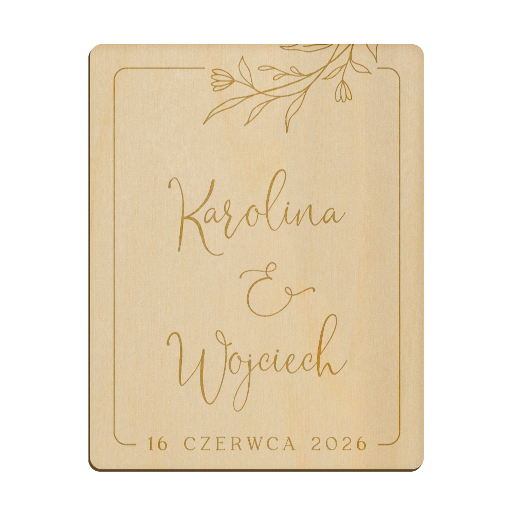 Drewniany magnes z grawerunkiem idealnie sprawdzi się w roli podziękowania dla gości weselnych.