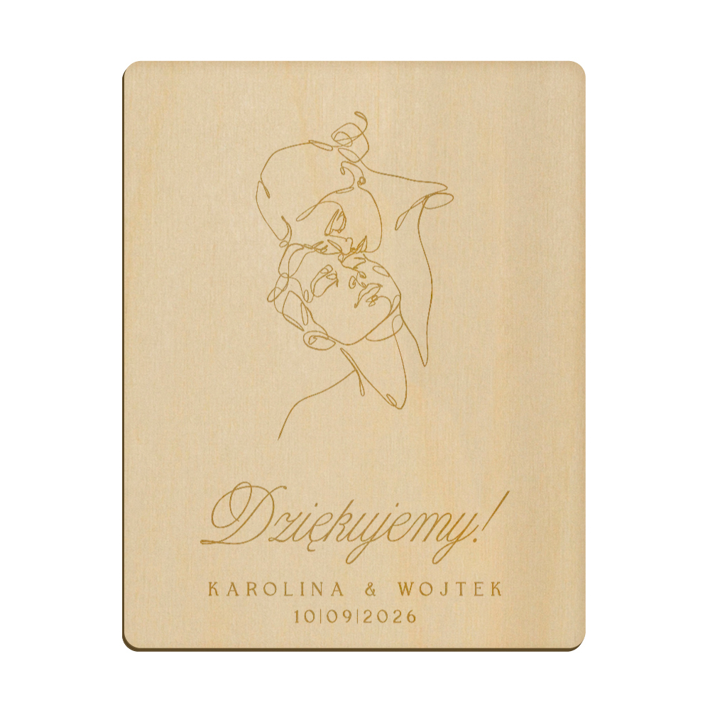 Drewniany magnes z grawerunkiem idealnie sprawdzi się w roli podziękowania dla gości weselnych.