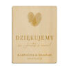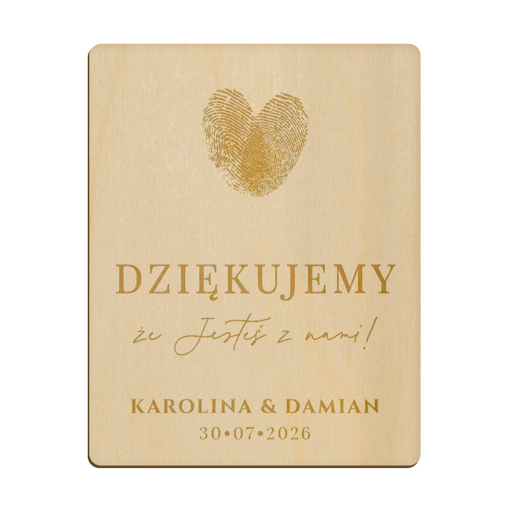 Drewniany magnes z grawerunkiem idealnie sprawdzi się w roli podziękowania dla gości weselnych.