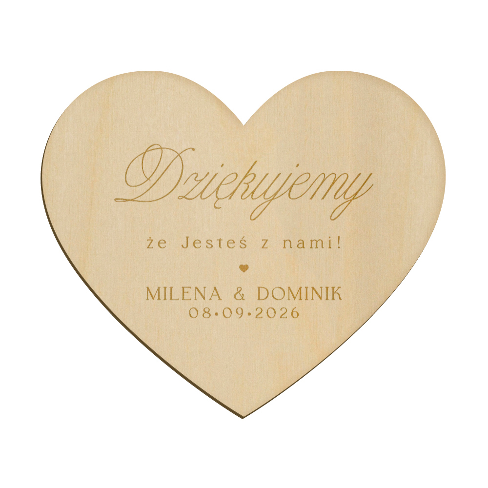 Drewniany magnes z grawerunkiem idealnie sprawdzi się w roli podziękowania dla gości weselnych.