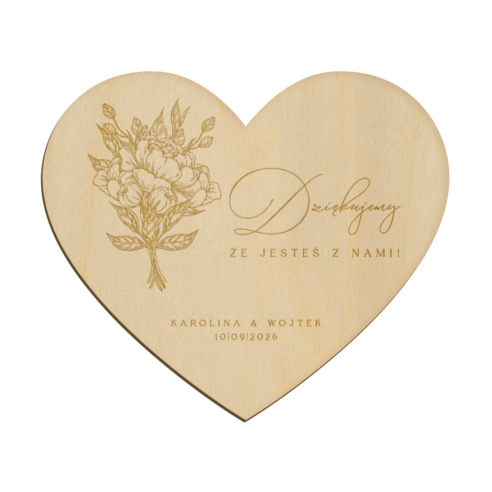 Drewniany magnes z grawerunkiem idealnie sprawdzi się w roli podziękowania dla gości weselnych.