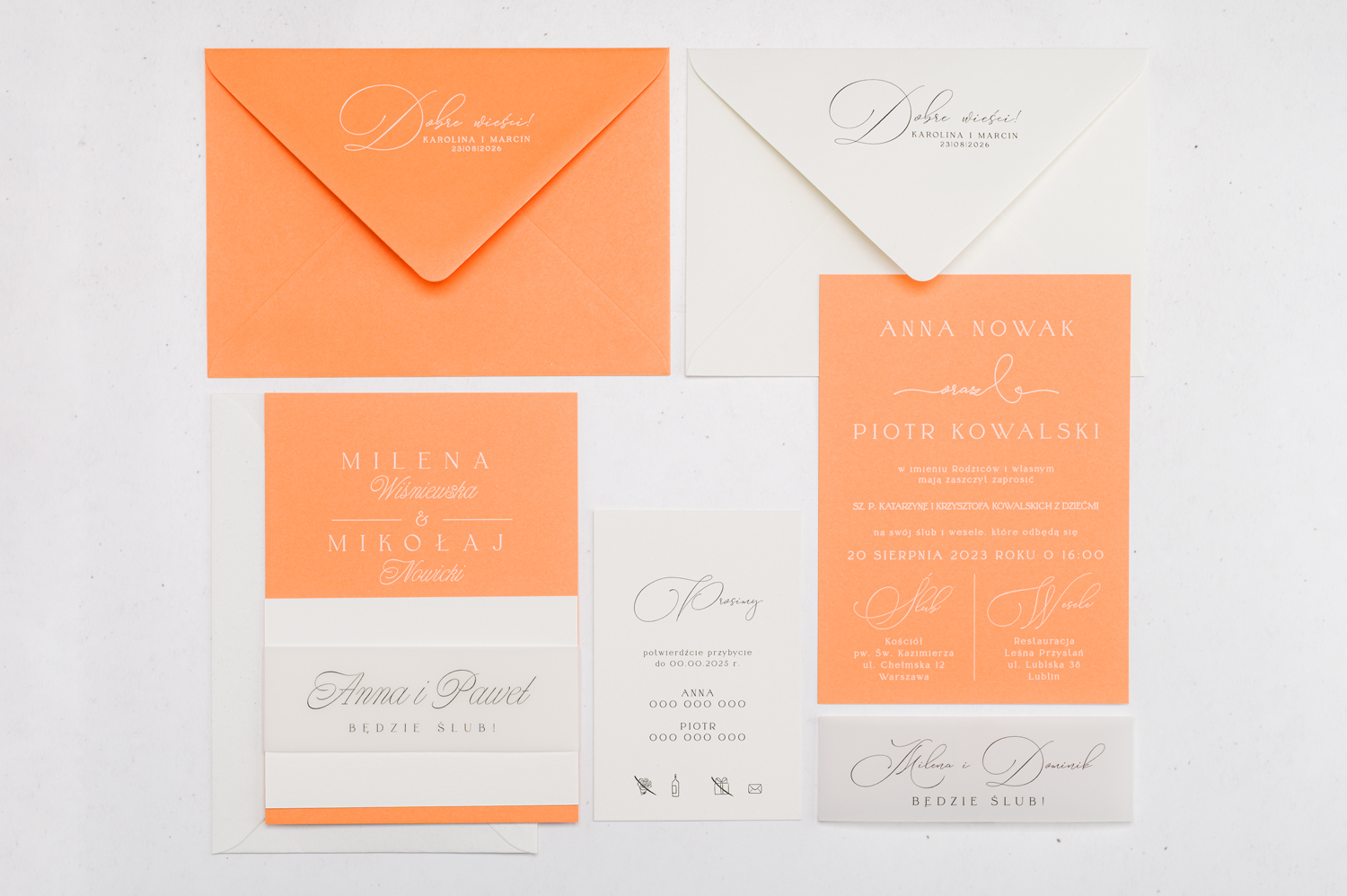 Wszystkie elementy drukowane na zaproszeniach możecie spersonalizować według uznania.
