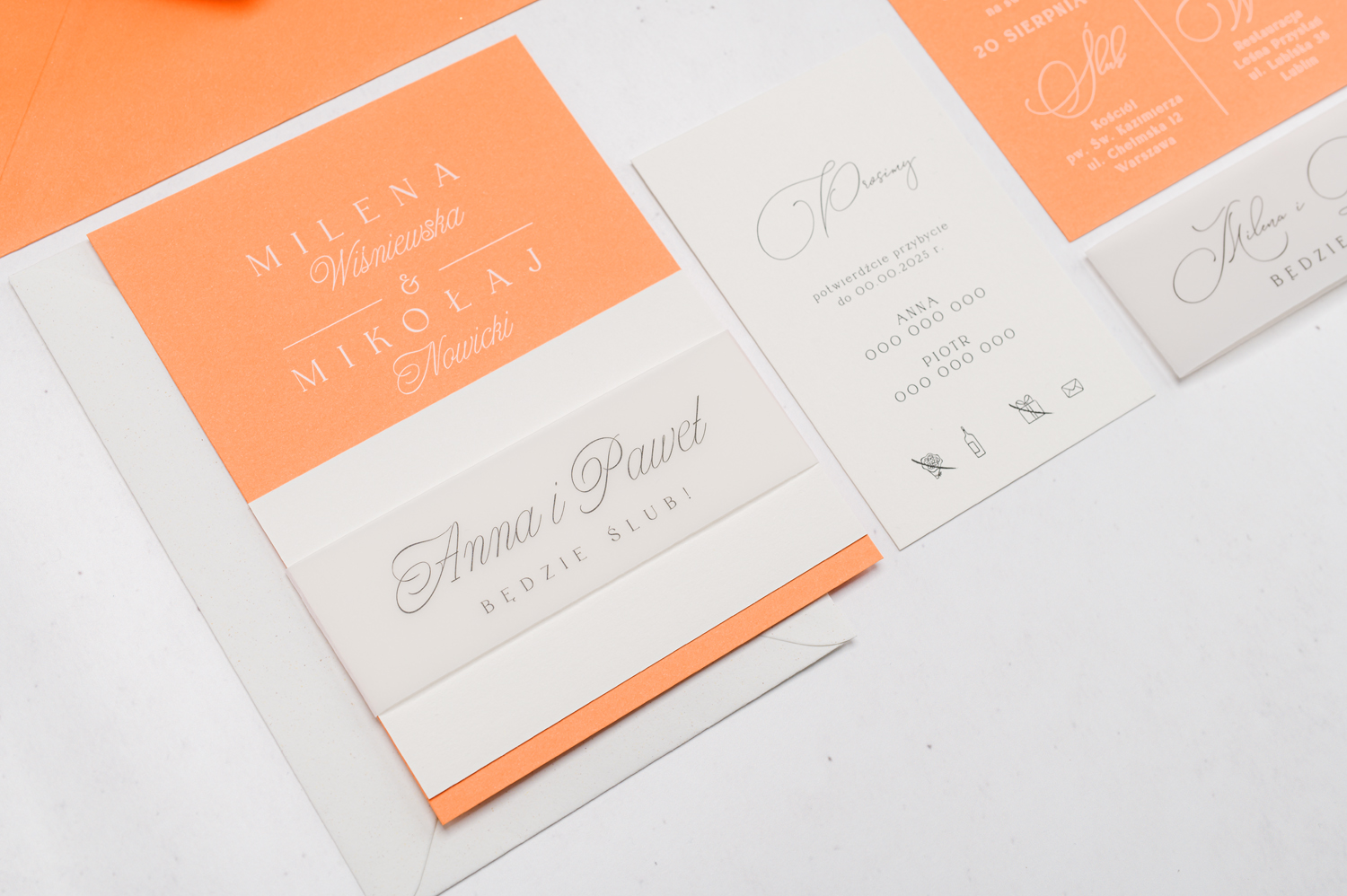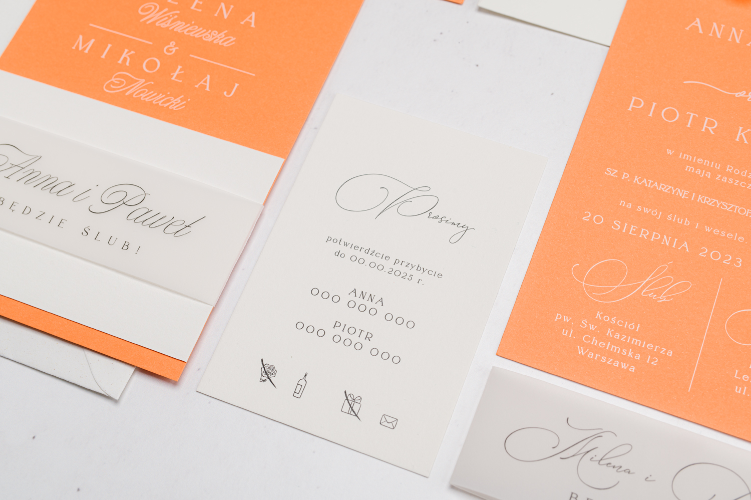 Dodaj pierwszą opinię dla Minimalistyczne zaproszenia ślubne karta Arancio pomarańczowe